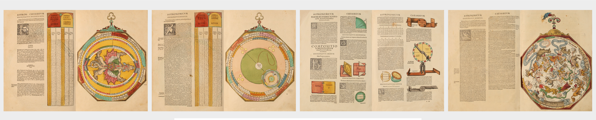 The Astronomicum Caesarum is considered one of the masterpieces of 16th century printing. Its lavish illustrations designed on movable discs of hand-colored cardboard and stitched with thread expose nothing less than the evolution of the universe and the laws that govern it.